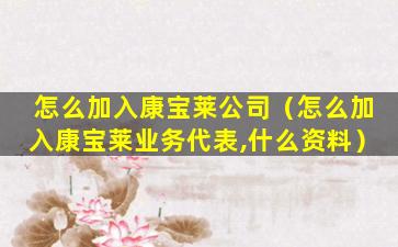 由于我提供的信息截止于2023年,具体的加入流程和要求可能会随着时间和地区的不同而有所变化。因此,建议你直接访问康宝莱的官方网站或联系当地的康宝莱分销商获取最新的信息。