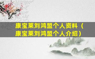 截至我所知的信息更新日期(2023年),康宝莱(Herbalife)是一家全球知名的营养品公司,而“刘鸿盟”这个名字并不是公众人物或者广为人知的康宝莱高管。如果刘鸿盟是康宝莱的某个地区的销售代表或者分销商,那么他的个人资料可能不会公开在互联网上,除非他自己选择在社交媒体或者其他平台上分享。