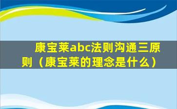 康宝莱(Herbalife)是一家全球知名的营养品公司,其销售模式中常常会提到“ABC法则”,这是一种沟通和销售策略,旨在帮助销售人员更有效地与潜在客户沟通。ABC法则通常指的是: