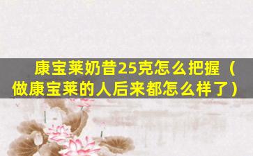 康宝莱(Herbalife)是一家全球知名的营养品公司,以直销模式销售其产品。关于“做康宝莱的人后来都怎么样了”,这个问题的答案因人而异,因为每个人的经历、努力程度、市场环境、个人能力等因素都会影响他们在康宝莱的业绩和最终结果。