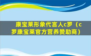 截至我的知识更新日期(2023年),康宝莱(Herbalife)是一家全球知名的营养品公司,而克里斯蒂亚诺·罗纳尔多(Cristiano Ronaldo),通常被称为C罗,是一位著名的葡萄牙足球运动员。C罗在职业生涯中曾与多个品牌合作,担任代言人,但关于他是否是康宝莱的形象代言人,需要查阅最新的官方信息或新闻报道来确认。