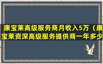 根据康宝莱的官方信息或公开报道,高级服务商的月收入可能会达到5万或更高,但这通常是业绩非常优秀的服务商才能达到的水平。需要注意的是,直销行业的收入波动可能很大,且并非所有服务商都能获得高额收入。直销行业也存在一定的风险,包括市场饱和、产品竞争、法律法规变化等。