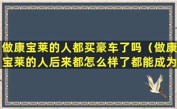 关于“做康宝莱的人都买豪车了吗”这个问题,我们不能一概而论。康宝莱是一家全球知名的营养品公司,其业务模式包括直销,即通过个人销售和团队建设来推广产品。在直销行业中,确实有一些成功的销售人员能够通过销售产品和建立团队获得较高的收入,这可能包括购买豪车等奢侈品。