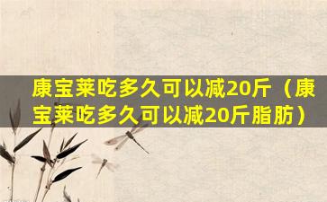 关于“吃康宝莱多久可以减20斤肉”的问题,这个问题的答案因人而异,因为减肥的效果受到多种因素的影响,包括个人的新陈代谢率、饮食习惯、运动量、身体状况、年龄、性别等。以下是一些影响减肥效果的因素: