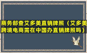 关于“商务部查艾多美直销牌照”的情况,目前没有官方的详细信息公布。直销牌照是指中国商务部颁发的允许企业在中国境内进行直销活动的许可证。直销企业需要符合一定的条件,并通过商务部的审核,才能获得直销牌照。