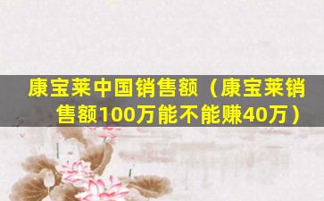 截至我所知的信息截止日期(2023年),康宝莱在中国的具体销售额数据可能需要通过公司的财务报告或官方公告来获取。通常,上市公司会在季度和年度的财务报告中披露其在全球各个市场的销售情况。