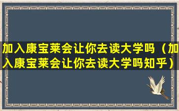 如果你在知乎上看到关于“加入康宝莱会让你去读大学吗”的问题,这可能是一个误解或者是一个特定情境下的问题。在实际情况中,这两者之间没有必然联系。如果你对加入康宝莱或读大学有具体的疑问,建议直接咨询相关领域的专业人士或者查找官方信息。