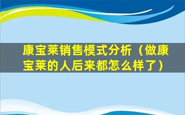 做康宝莱的人后来的情况多种多样,取决于个人的努力、市场条件、个人目标和许多其他因素。如果你考虑加入康宝莱或任何其他直销公司,重要的是要进行充分的研究,了解公司的商业模式,设定实际的目标,并准备好投入时间和精力。同时,也要注意避免过度投资,确保自己的财务安全。