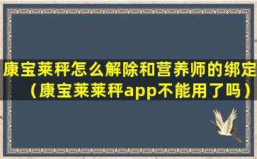 请注意,解除绑定可能会影响您接收个性化健康建议的能力,因此在进行此操作之前,请确保您了解所有可能的后果。如果您只是想要重新绑定到另一个营养师,您可能需要新的营养师的帮助来重新设置秤。