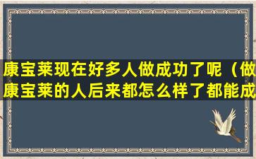 康宝莱(Herbalife)是一家全球性的营养品公司,以直销模式销售其产品。加入康宝莱的人通常会通过销售产品和招募新成员来赚取收入。关于“做康宝莱的人后来都怎么样了”以及“都能成为成功人吗”的问题,答案并不是一概而论的,因为每个人的经历和结果都有很大的差异。