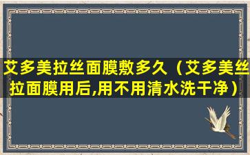 艾多美丝拉面膜(假设您指的是某种面膜产品)使用后是否需要用清水洗净,这取决于该面膜的类型和使用说明。一般来说,面膜可以分为以下几种类型: