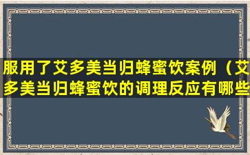 关于艾多美当归蜂蜜饮的案例,我们无法提供具体的信息,因为这需要基于实际的医疗记录和专业评估。如果您或他人有服用艾多美当归蜂蜜饮的经历,建议咨询专业的医疗人员以获取准确的医疗建议和信息。