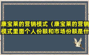 康宝莱(Herbalife)是一家全球性的营养品公司,其营销模式主要基于多层次营销(MLM)或称为网络营销。在这种模式中,个人可以通过销售公司的产品以及招募新的销售代表来赚取收入。康宝莱的营销模式中,个人份额和市场份额是两个不同的概念,它们分别指的是个人销售业绩和市场整体销售业绩。