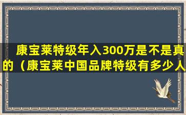 关于“康宝莱特级年入300万”的说法,首先需要明确的是,康宝莱是一家全球知名的营养品公司,其业务模式包括直销。在直销行业中,收入水平很大程度上取决于个人的销售能力、团队管理能力以及市场情况。
