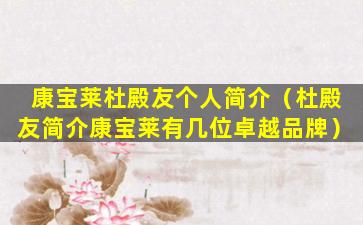 很抱歉,我无法提供关于“康宝莱杜殿友”的个人简介,因为这可能涉及到个人隐私,而且我无法验证此信息的准确性。如果您是在寻找关于康宝莱公司的信息,我可以提供一些基本信息。