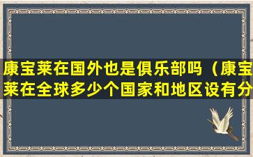 关于“康宝莱在国外也是俱乐部吗”的问题,答案是肯定的。康宝莱在全球多个国家和地区都有运营,包括通过营养俱乐部这样的形式。康宝莱的运营模式和产品在不同国家和地区可能会受到当地法律法规的影响,因此在不同国家的具体运营方式可能会有所不同。