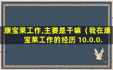 请注意,以上信息是基于一般情况下的描述,具体的工作经历可能会因个人职位、所在地区和公司政策等因素而有所不同。如果你对在康宝莱工作的具体经历感兴趣,建议直接联系康宝莱的现任或前任员工,以获取更详细和个性化的信息。