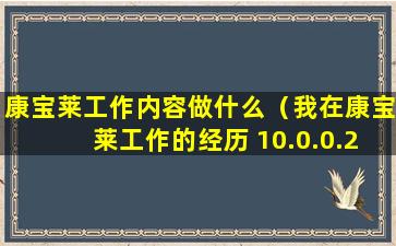 如果您是在询问关于康宝莱公司的具体工作经历,建议您提供更详细的信息,或者直接访问康宝莱的官方网站或相关职业论坛,以获取更多关于在该公司工作的第一手资料和员工评价。同时,您也可以参考康宝莱的社交媒体页面或LinkedIn等职业社交平台上的相关讨论和分享。