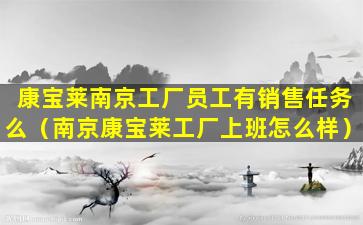 如果您是康宝莱南京工厂的员工,并且对您的职责有疑问,建议直接咨询您的上级或人力资源部门,以获取准确的信息。同时,如果您是独立分销商或会员,您的销售任务和业绩目标将由您与公司之间的协议来确定。