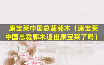 截至我知识更新的时间点(2023年),关于康宝莱中国总裁郭木是否退出康宝莱的信息并未公开披露。如果有关郭木退出康宝莱的消息,通常会通过公司官方声明、新闻报道或其他官方渠道进行公布。