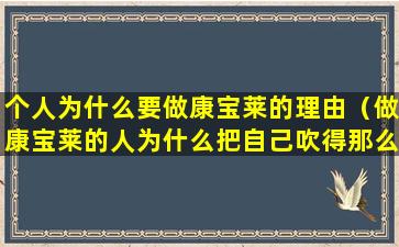 以下是一些可能的原因,为什么做康宝莱的人可能会把自己和产品吹得很好: