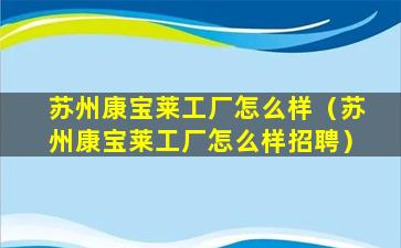 关于“苏州康宝莱工厂怎么样”的问题,由于我无法访问实时的网络数据,包括知乎上的用户评论和讨论,因此无法提供具体的用户评价或者工厂的详细情况。不过,我可以提供一些一般性的信息。