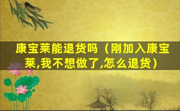 如果您刚刚加入了康宝莱(Herbalife)并决定不想继续,您可能有权根据公司的退货政策进行退货。康宝莱通常为其会员提供一定的退货保障,但这可能会根据您所在的国家或地区的法律以及公司的具体政策而有所不同。
