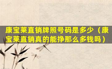 请注意,直销牌照号码可能会随着时间的推移而发生变化,或者有新的更新。因此,如果您需要最新的信息,建议直接咨询康宝莱公司或访问中国商务部的官方网站进行核实。同时,由于直销行业在中国受到严格的监管,任何关于直销牌照的信息都应当来源于官方渠道,以确保准确性。