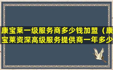 如果你想了解成为康宝莱一级服务商的具体费用和条件,建议直接联系康宝莱公司或访问其官方网站获取最新、最准确的信息。通常,公司会要求潜在的加盟商参加培训,并可能需要购买一定数量的产品作为启动库存。还可能涉及其他费用,如营销材料费用、培训费用等。