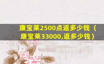 康宝莱(Herbalife)是一家全球知名的营养品公司,提供各种营养补充品、体重管理和个人护理产品。关于“康宝莱33000返多少钱”的问题,这可能指的是康宝莱的某个促销活动或者会员计划中的返利政策。