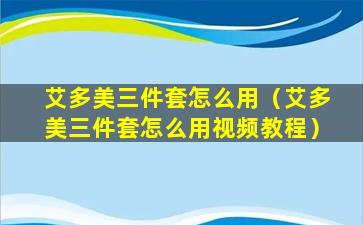 关于“艾多美三件套”的使用方法,由于我无法提供视频内容,但我可以为您提供一个文字版的教程,帮助您了解如何使用这个产品。请注意,“艾多美三件套”可能是指某个特定品牌或系列的产品,如护肤品套装,但具体产品可能因品牌和地区而异。以下是一个通用的使用指南: