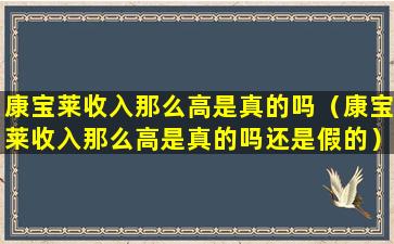关于康宝莱的收入是否真的那么高,没有统一的答案。有些人可能通过康宝莱获得了可观的收入,而另一些人可能没有达到预期的收入水平。重要的是要基于个人的情况和市场研究做出明智的决策。如果考虑加入康宝莱,建议从官方渠道获取最准确的信息,并咨询专业人士的意见。