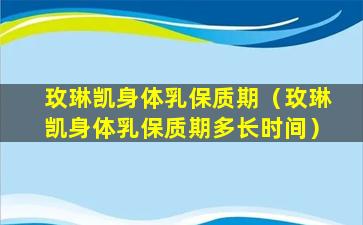 玫琳凯(Mary Kay)是一家国际知名的美容品牌,其产品包括护肤品、彩妆品等。关于玫琳凯身体乳的保质期,通常情况下,化妆品和护肤品的保质期会在产品包装上标明。