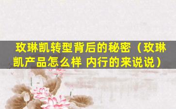 请注意,以上信息是基于一般性的商业转型策略,并不特指玫琳凯的具体情况。如果需要了解玫琳凯的具体转型策略和背后的秘密,建议查阅公司的官方公告、新闻报道或直接联系公司获取最新信息。