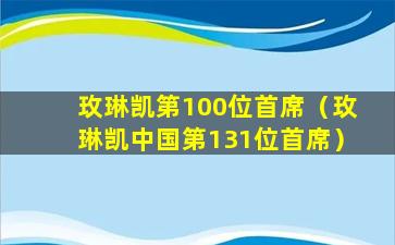 关于“玫琳凯第100位首席”的具体信息,由于玫琳凯的晋升是基于个人业绩和团队发展,这个数字会随着时间的推移而变化。如果您是在寻找特定的历史事件或者某位特定的首席顾问的信息,可能需要查阅玫琳凯的官方公告或者相关的新闻报道来获取最准确的信息。