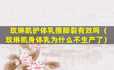 玫琳凯(Mary Kay)是一个知名的美容品牌,提供多种护肤产品,包括护体乳。护体乳通常用于滋润和保护皮肤,减少干燥和粗糙。如果你的脚部出现裂纹,使用护体乳可能有助于提供必要的滋润和修复。