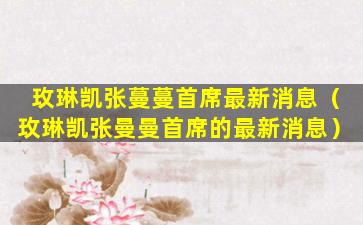如果您想了解更多关于玫琳凯或张曼曼首席的最新动态,建议您直接访问玫琳凯的官方网站或关注其官方社交媒体账号,以获取最准确和官方的信息。同时,也可以关注相关新闻报道和行业动态,以了解可能的最新进展。请注意,任何关于个人或公司的信息应以官方发布为准,避免传播未经证实的消息。