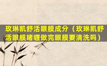 玫琳凯(Mary Kay)是一个国际知名的美容品牌,提供各种护肤和彩妆产品。关于“玫琳凯舒活眼膜”的成分,由于产品配方可能会随时间和地区而有所不同,因此最准确的信息应该直接从产品包装上的成分列表或官方网站获取。