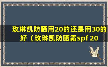 玫琳凯(Mary Kay)是一个知名的美容品牌,提供多种防晒产品。选择防晒指数(SPF)20还是30的产品,取决于您的个人需求和环境因素。