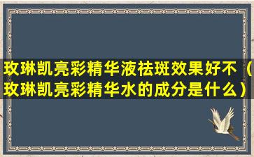 玫琳凯(Mary Kay)是一个国际知名的美容品牌,其产品线包括护肤、彩妆等多个系列。关于“玫琳凯亮彩精华液”的祛斑效果,这需要根据产品的具体成分、使用者的肤质以及使用方法来综合评估。