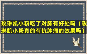 关于“玫琳凯小粉”是否对肺有好处,目前没有官方的科学研究或声明表明该产品具有改善肺部健康的功效。玫琳凯是一家知名的美容品牌,其产品主要集中在护肤和美容领域。