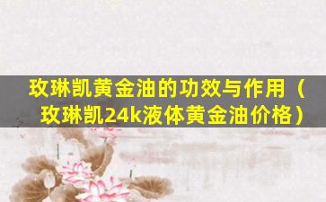 玫琳凯(Mary Kay)是一家国际知名的美容品牌,其产品线包括护肤品、彩妆等。关于“24k液体黄金油”,这可能是指玫琳凯的一款含有黄金成分的护肤油产品。由于产品名称和具体成分可能因地区和时间而异,我无法提供确切的产品信息。