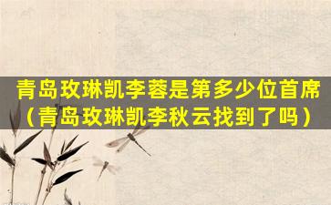 截至我的知识更新日期(2023年),我无法提供确切的数字来回答“青岛玫琳凯李蓉是第多少位首席”的问题,因为这需要实时的数据和玫琳凯公司的内部记录。玫琳凯(Mary Kay)是一家国际知名的美容品牌,其销售模式包括独立美容顾问通过销售产品来建立自己的业务。