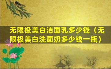 关于无限极美白洁面乳的价格,由于地区、销售渠道和促销活动等因素的不同,价格可能会有所变化。通常,这类产品的价格可能在几十元人民币到一百多元人民币之间。为了获得最准确的价格信息,建议您直接访问无限极的官方网站、授权的零售商或在线电商平台,如天猫、京东等,查看最新的价格信息。
