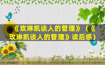 读后感《玫琳凯谈人的管理》——以人为本的管理智慧
