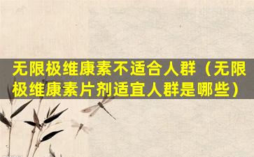 无限极维康素片剂是一种保健品,其适宜人群通常包括需要补充维生素和矿物质的成年人。具体适宜人群可能会根据产品的具体成分和功能有所不同,因此在使用前应仔细阅读产品说明书或咨询医生或专业人士。
