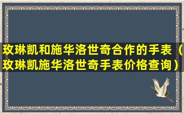 玫琳凯(Mary Kay)是一家知名的美容品牌,而施华洛世奇(Swarovski)则是一家以水晶制品闻名的公司。两者都有可能推出合作产品,包括手表。具体的产品信息、价格以及是否存在这样的合作产品,需要通过官方渠道或者授权零售商来查询。