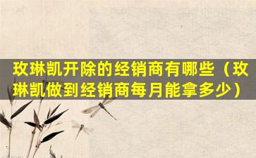关于“玫琳凯开除的经销商有哪些”,这个问题没有公开的具体名单,因为这通常属于公司的内部管理事务。玫琳凯作为一家公司,有权根据其商业政策和行为准则来管理其经销商网络。如果经销商违反了公司的政策或行为准则,公司可能会采取包括终止合作关系在内的措施。