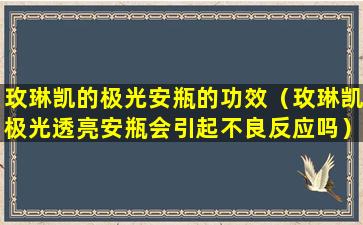 玫琳凯(Mary Kay)是一家国际知名的美容品牌,提供各种护肤和彩妆产品。关于“极光安瓶”,这可能是指玫琳凯的一款具有特殊功效的精华液产品。由于产品线可能会更新,具体的产品名称和成分可能会有所变化。