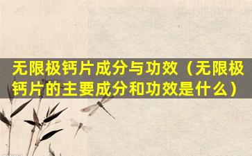 无限极(Infinitus)是一家中国的保健品公司,其产品线包括多种健康食品和营养补充品。关于无限极钙片的主要成分和功效,以下是一般性的信息,但请注意,具体产品的成分和功效可能会有所不同,建议查看具体产品的标签或官方说明以获取准确信息。
